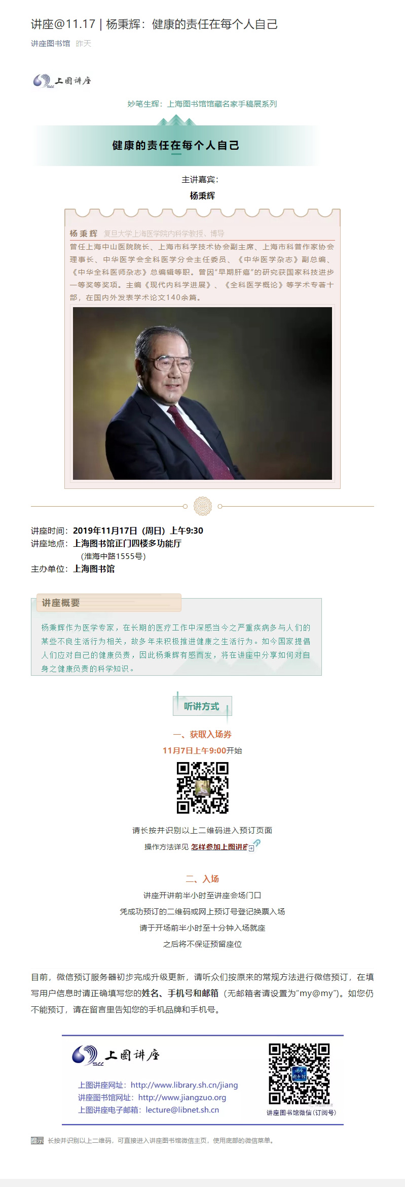 讲座@11.17 | 杨秉辉:健康的责任在每个人自己